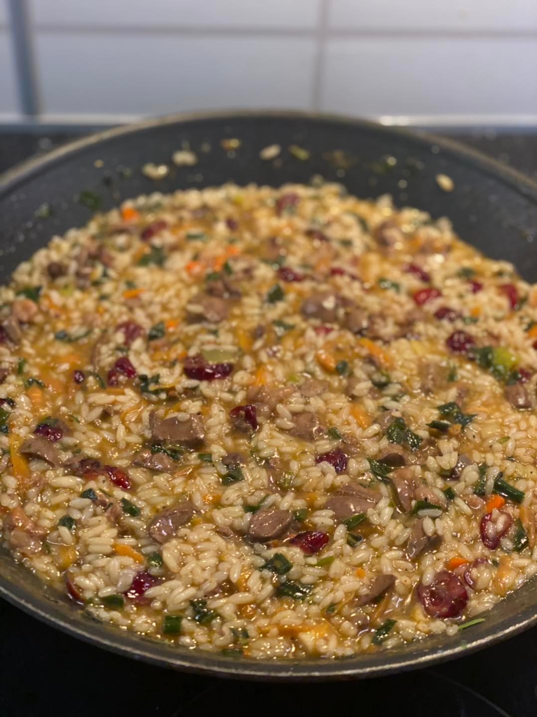 Προσθέστε νερό και αφήστε το ρύζι να ψηθεί, η ιδέα είναι να μην είναι 100% έτοιμο, αλλά να το αφήσετε λίγο άψητο.