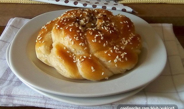 1 Για τη ζύμη, ρίξτε τη μαγιά και τη ζάχαρη πάνω στο χλιαρό γάλα και αφήστε το να φουσκώσει. Χτυπάμε το αυγό, προσθέτουμε αλάτι και λάδι και χτυπάμε περισσότερο, προσθέτουμε τη μαγιά και το υπόλοιπο χλιαρό γάλα και το ξινό νερό και ανακατεύουμε. Προσθέστε αλεύρι και ζυμώστε μια λεία, μαλακή ζύμη. Σκεπάζουμε τη ζύμη με ένα πανί και την αφήνουμε να φουσκώσει δύο φορές.