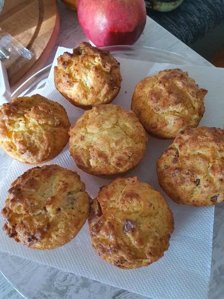Έβαλα επίσης μια πρέζα αλάτι. Ανακατεύουμε καλά και θα έχουμε μια πολύ παχιά κολλώδη ζύμη. Αλείψτε τις φόρμες σας με μπόλικο λάδι και γεμίστε τις μέχρι τη μέση με ζύμη. Βάλτε ένα μικρό κομμάτι βούτυρο από πάνω. Ψήνουμε σε προθερμασμένο φούρνο στους 180 βαθμούς για 20 λεπτά ή μέχρι να στεγνώσουν. Απολαύστε τα με ένα φλιτζάνι κεφίρ ή τσάι, στην πραγματικότητα ό, τι προτιμάτε!