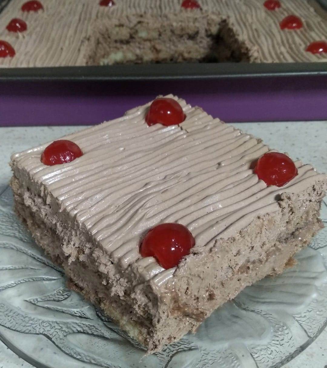 Τοποθετούμε το γλυκό στο ψυγείο για αρκετές ώρες (τουλάχιστον 6, ιδανικά 1 βράδυ), καθώς όσο μένει γίνεται πιο νόστιμο και δένει καλύτερα.
