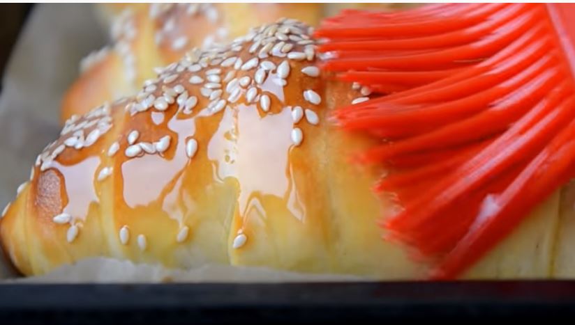 Τα αλείφετε με το αυγό και πασπαλίζετε με το σουσάμι.
