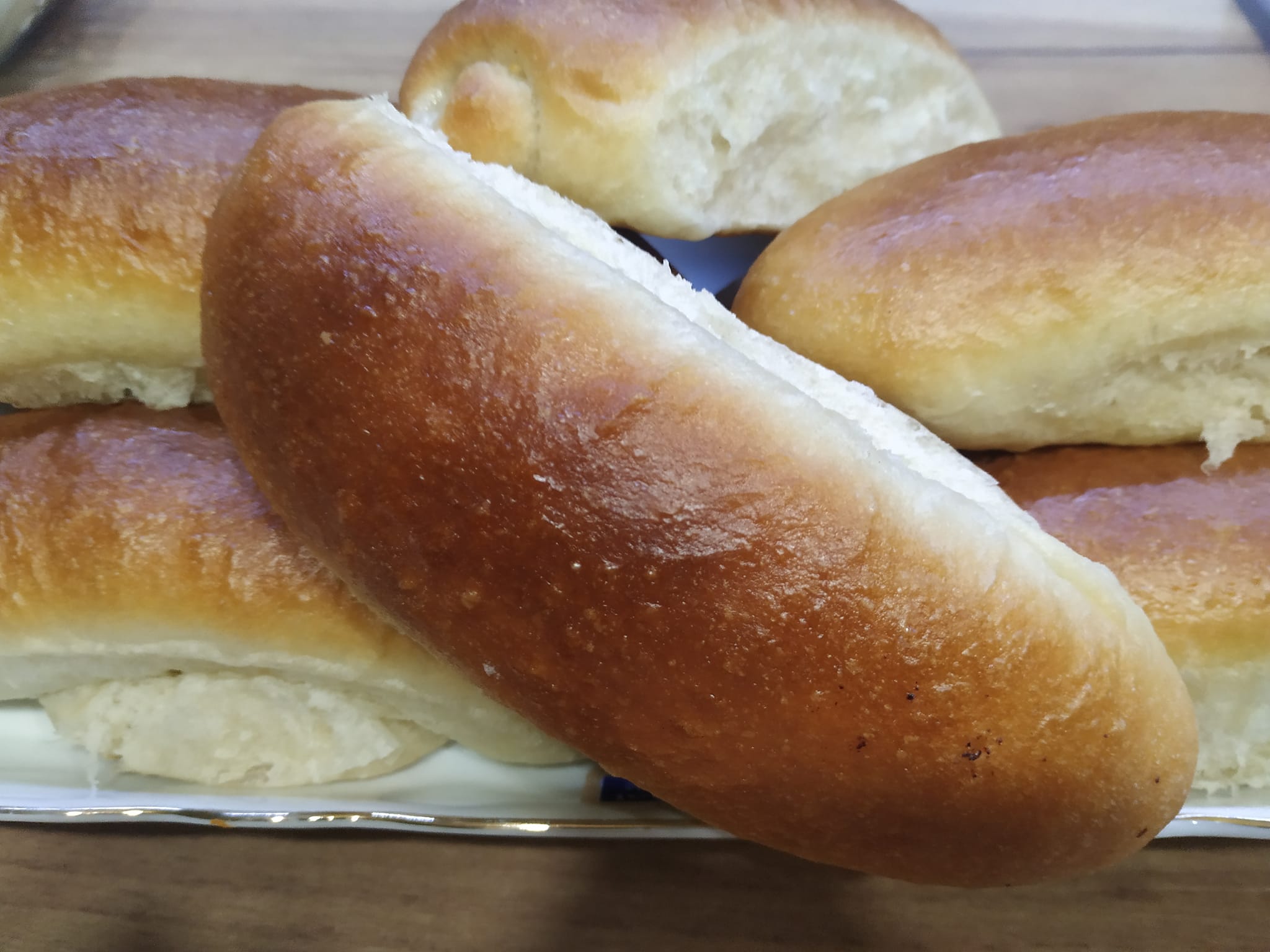 Αλατίζουμε στο κοσκινισμένο αλεύρι. Σε ζεστό νερό προσθέτουμε τη ζάχαρη και τη μαγιά. Χωρίς να αφρίσει, προσθέτουμε στο αλεύρι, προσθέτουμε λάδι. Ζυμώνουμε μια μαλακή ζύμη. Αμέσως χωρίς να φουσκώσει η ζύμη, χωρίζουμε σε ίσα μέρη των 80 γρ. και σχηματίζουμε μπαλάκια. Ανοίξτε κάθε μπάλα σε πάγκο χωρίς αλεύρι, σε οβάλ σχημα και λεπτή 0,2 εκ. Βάζετε γέμιση εάν θέλετε και τα ρολάρετε να κλεισουν