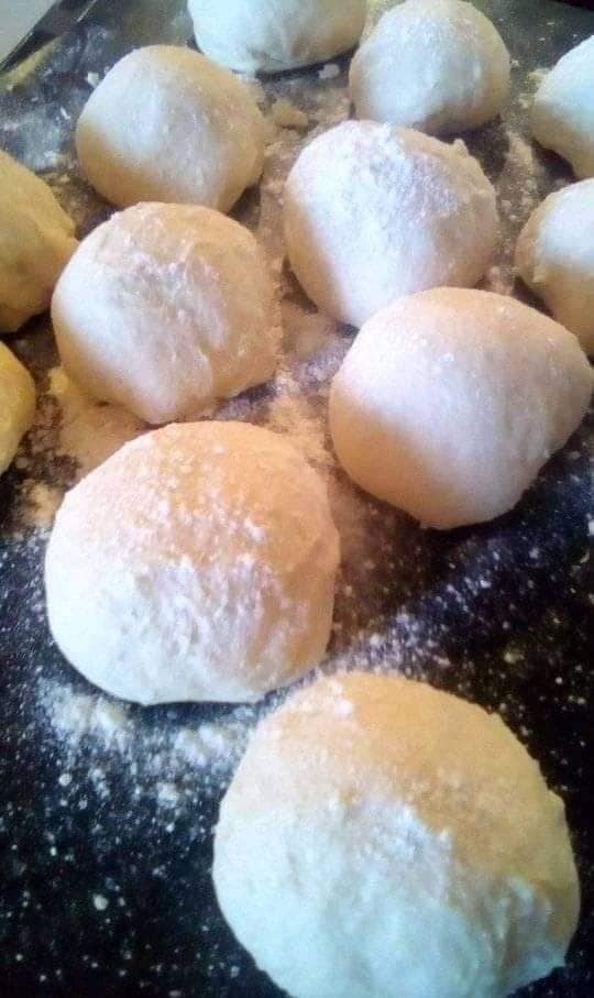 Μετα την μεταφέρουμε στον πάγκο μας την ζυμώνουμε και κόβοντας την κάνουμε μπαλιτσες!