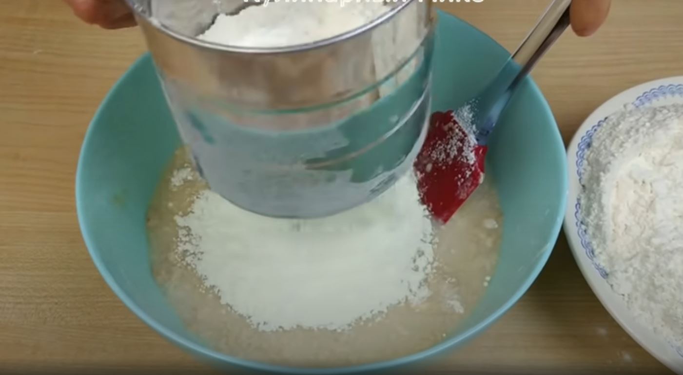 Σε ένα βαθύ μπολ προσθέστε 3 κουταλιές της σούπας αλεύρι με ένα κουταλάκι του γλυκού αλάτι και μια κουταλιά της σούπας ζάχαρη και ανακατεύω