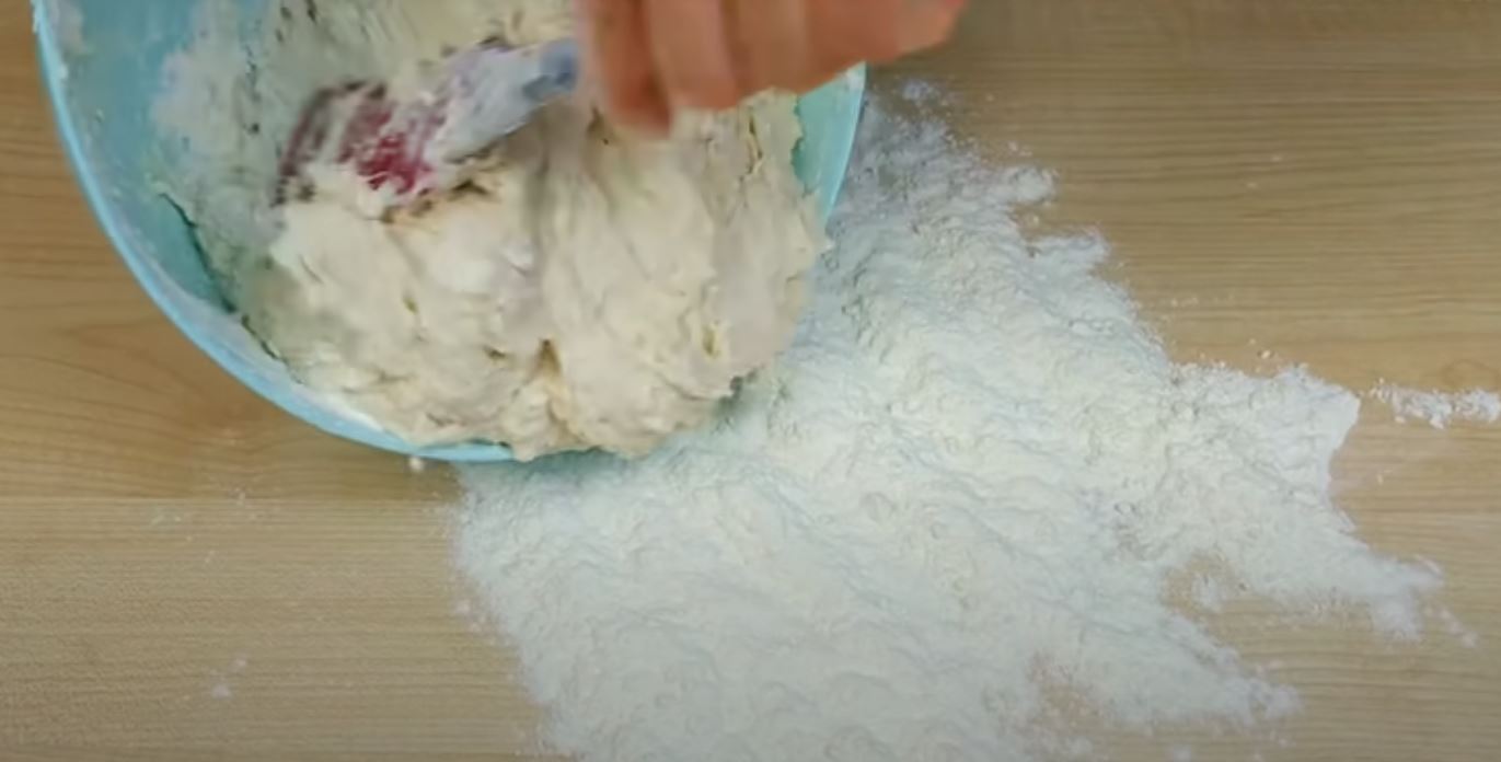 με αρκετο αλεύρι και αρχίζουμε να ζυμώνουμε με τα χέρια μας, έτσι γίνεται η ζύμη μαλακή και δεν κολλάει