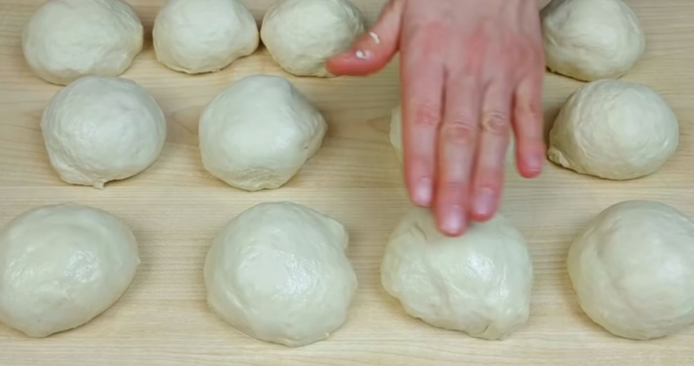 έτσι ώστε να είναι πιο βολικό για εμάς να δουλεύουμε την ζυμη. Κόβουμε περίπου 90 γραμμάρια ζύμης και φτιαχνω 13 μπάλες.