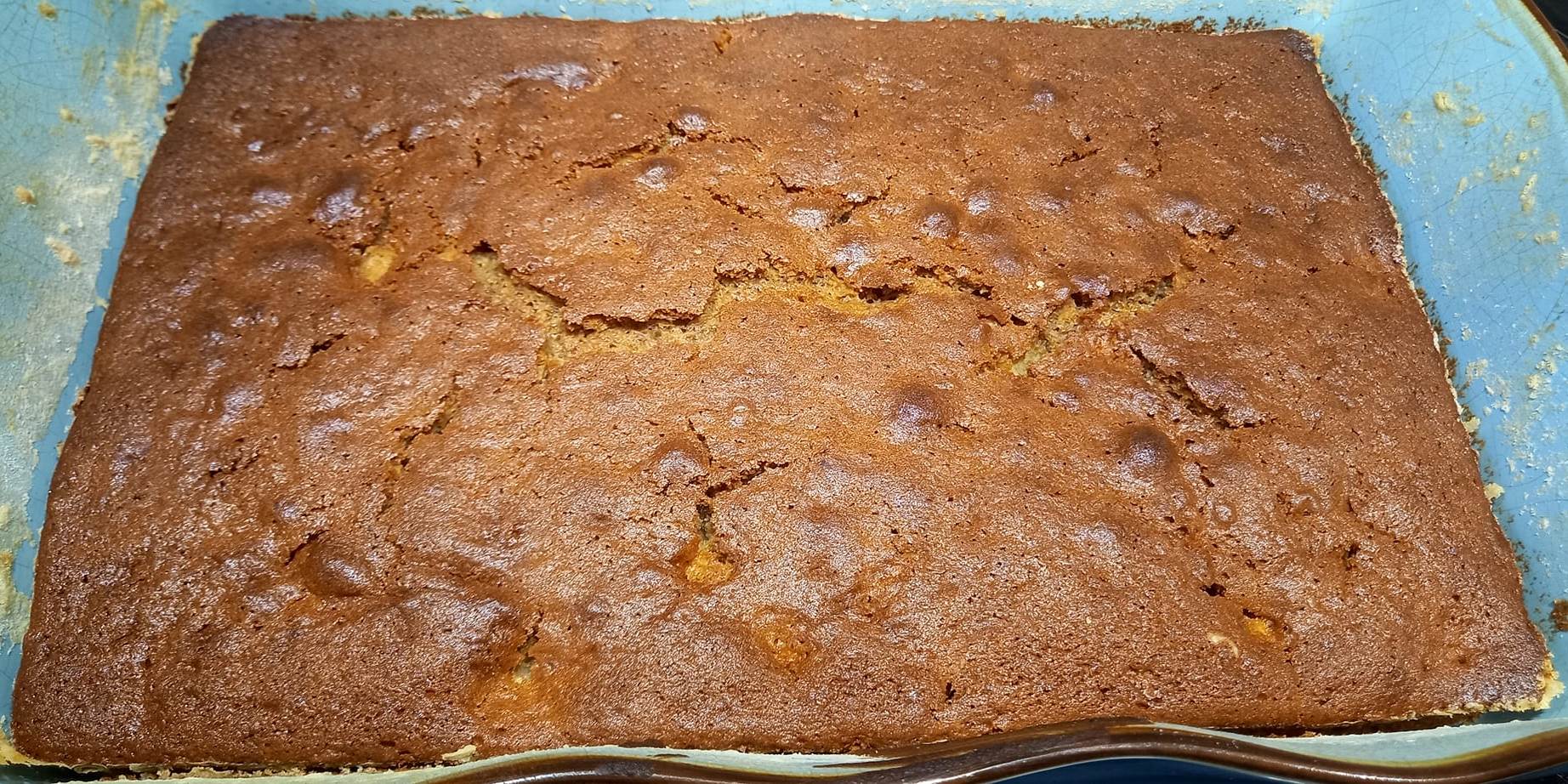Αλείφουμε με βούτυρο και πασπαλίζουμε με αλεύρι ένα ταψάκι διαμέτρου 28 εκ. Ρίχνουμε μέσα το μείγμα και ψήνουμε στους 180°C για 1 ώρα.