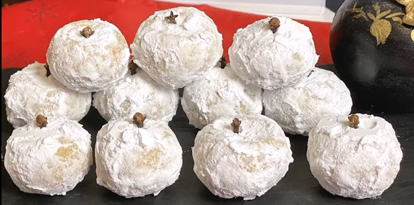 Τωρα τα μανταρινακια τα ρίχνουμε σε ένα μπολ με ζάχαρη άχνη τα καλύπτουμε πολύ καλά και τα τοποθετούμε σε ένα ταψάκι με λαδόκολλα