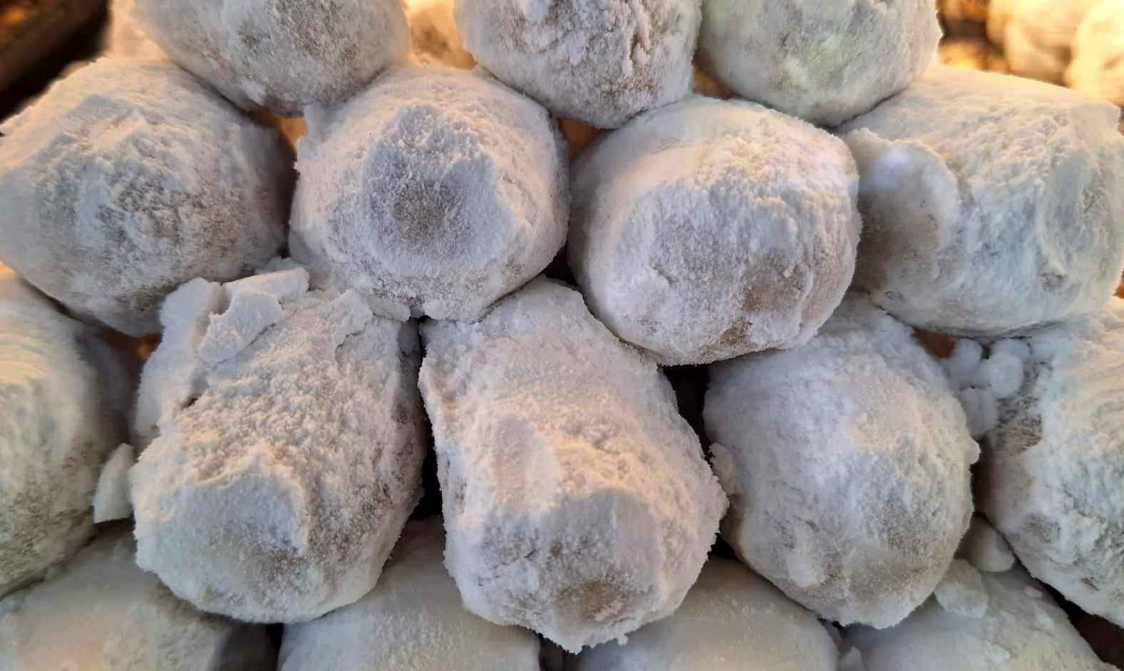βουτάτε σε ένα μπολ με λιγο νερό που έχουμε προσθέσει ανθόνερο (περίπου 10 σταγόνες μη αραιωμένο ροδόνερο ή 1 κουταλάκι του γλυκού απλου ανθονερό), τα πασπαλίζετε με ζάχαρη άχνη και τα