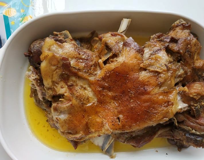 Σημείωση: Η παραπάνω διαδικασία μειώνει τα λίπη του αρνιού δημιουργώντας ένα εξαιρετικά νόστιμο, κριτσανιστό εξωτερικά και ζουμερό εσωτερικά κρέας. Αν αντί για αρνί χρησιμοποιήσετε κατσίκι, που έχει λιγότερο λίπος, ο συνολικός χρόνος πρέπει να μειωθεί κατά περίπου 20′-30′ λεπτά, ώστε το κρέας να μην στεγνώσει. Σ’ αυτή την περίπτωση χρησιμοποιήστε τον φούρνο κανονικά χωρίς αέρα.