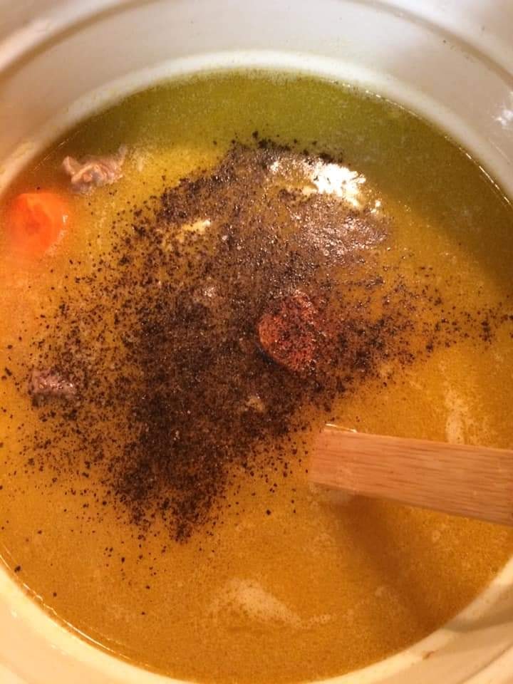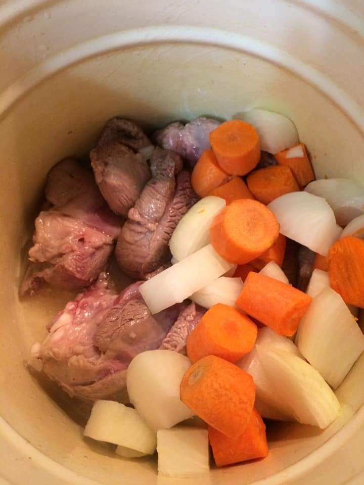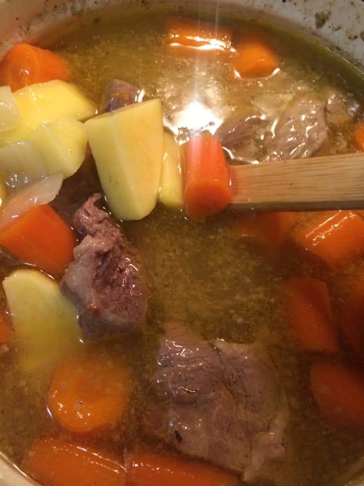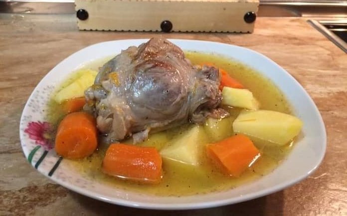 και λεμόνι. Αφήνουμε να βράσει για 90 λεπτά. και μετά προσθέτουμε τις πατάτες. Αφήνουμε στη φωτιά για άλλα 60 λεπτά.
