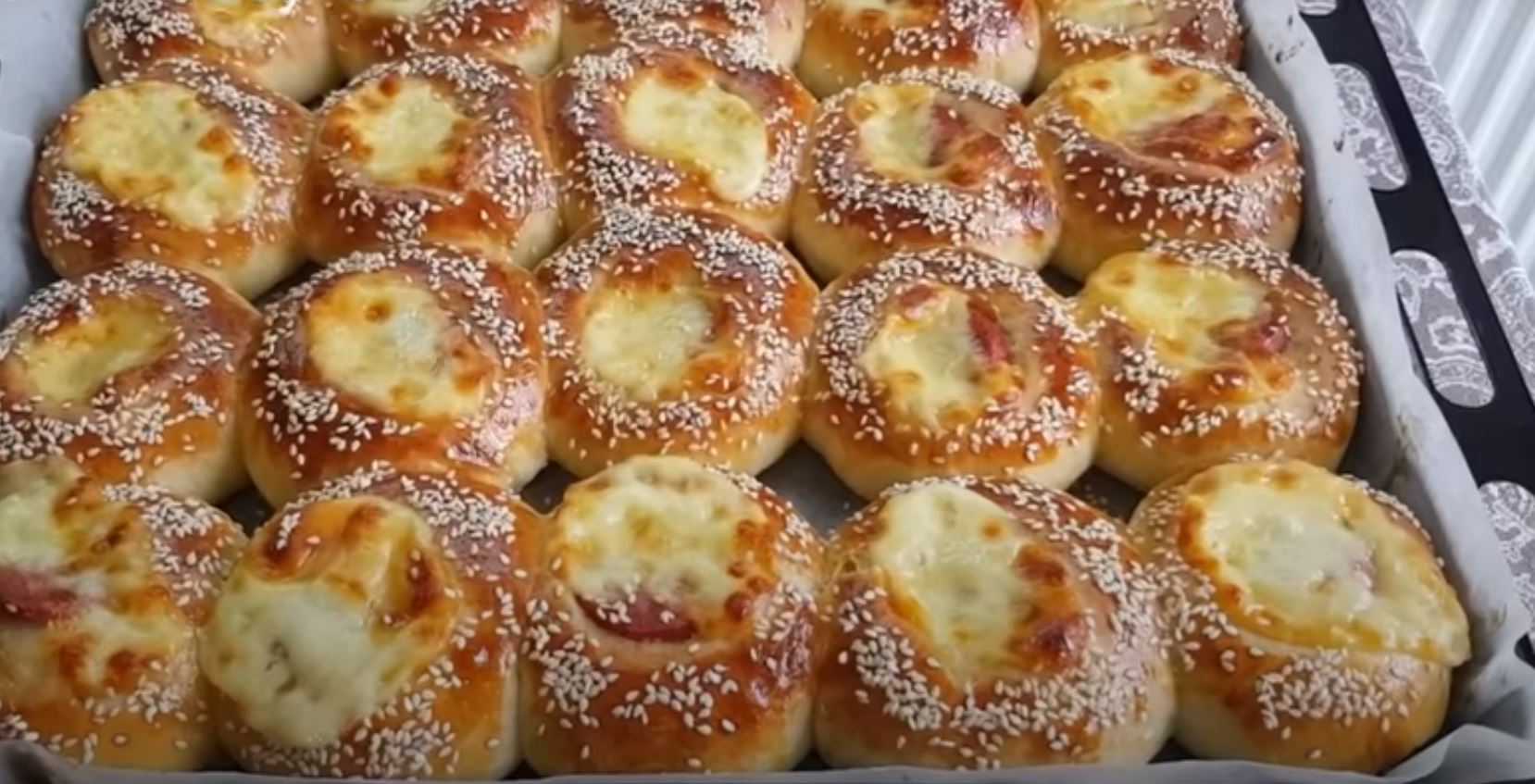 Παiρνουμε δόσεις ζύμης ίσες με 2 καρύδια και πλάθουμε σε μπαλάκια και την τοποθετούμε σε ένα ταψί στρωμένο με χαρτί ψησίματος.