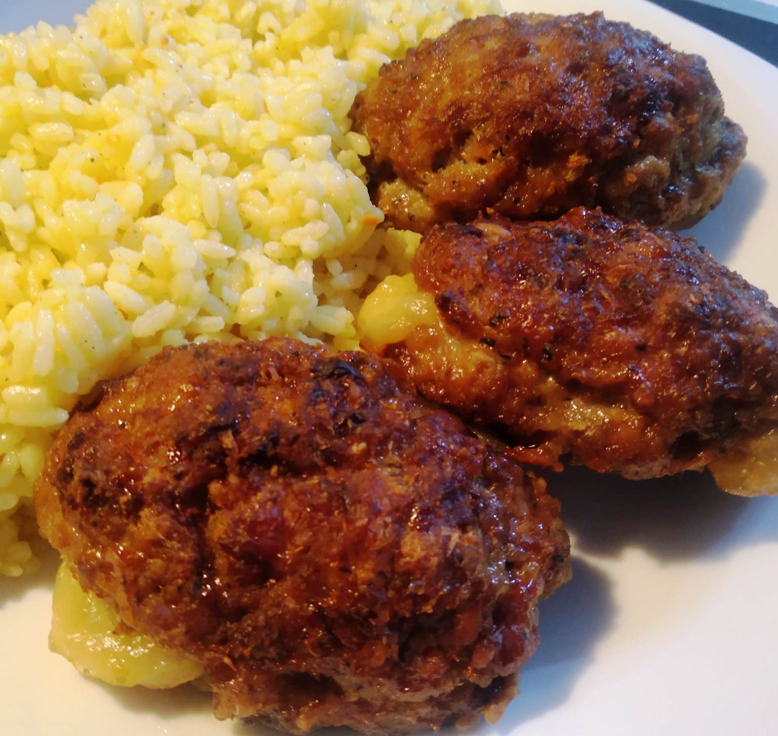 Ζυμωνω πολύ καλα όλα τα υλικα και πλαθω μπιφτέκια. Βάζω στα μισά μπέικον, βρασμένα αυγά, χαλούμι με τα υπόλοιπα μισα τα κλείνω και τα πλάθω ρολακια.