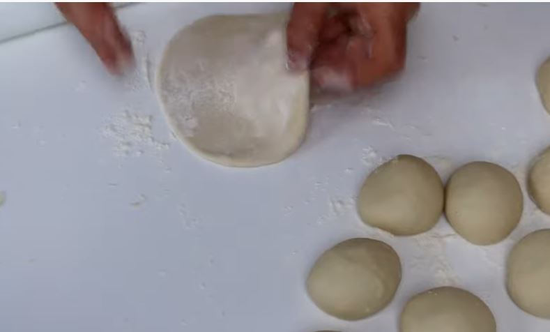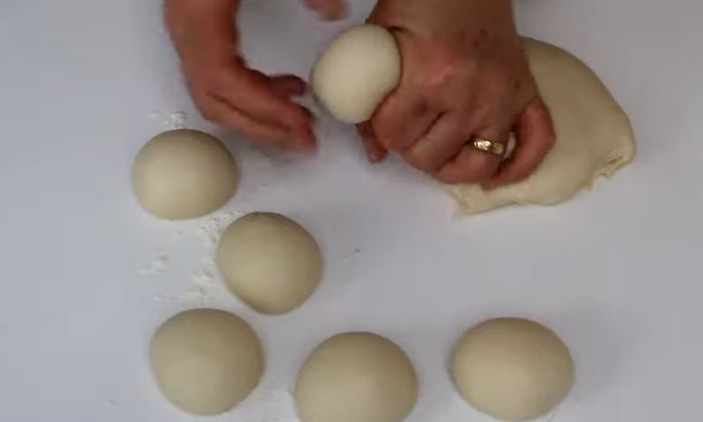 Πάρτε τη ζύμη, φτιάξτε ένα καρβέλι και χωρίστε το σε μερίδες των 100 γρ.