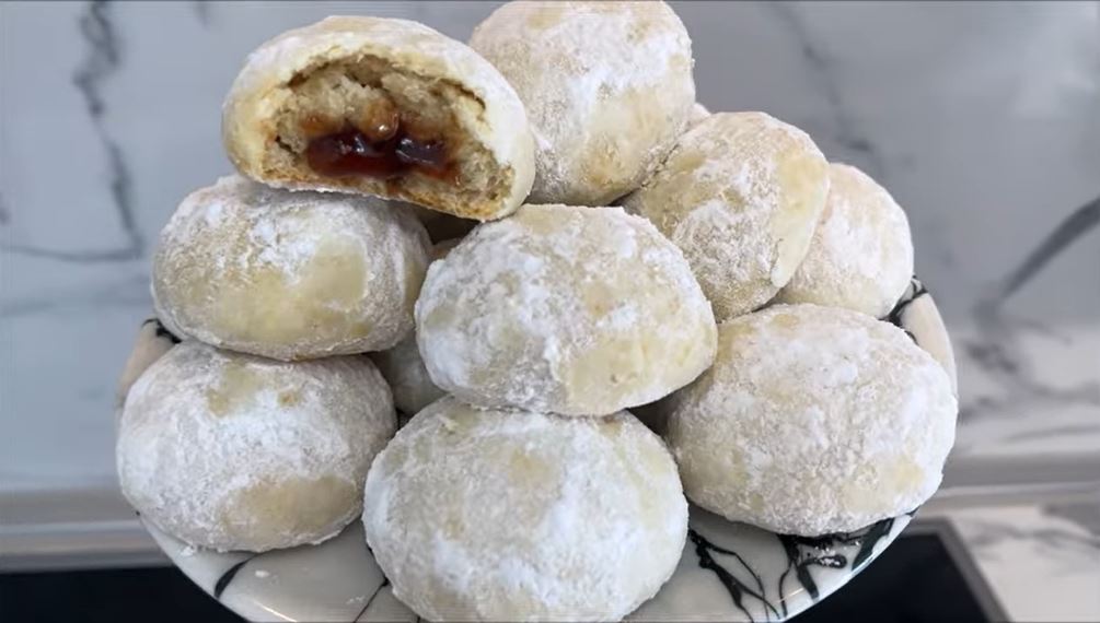 Παίρνουμε ένα κομμάτι ζύμης στο μέγεθος καρυδιού το πλάθουμε αρχικά μπαλάκι και μετά με τα δάχτυλα μας το πατάμε ν ανοίξει.Βάζουμε στο κέντρο ένα κουταλάκι μαρμελάδα και το κλείνουμε καλά.