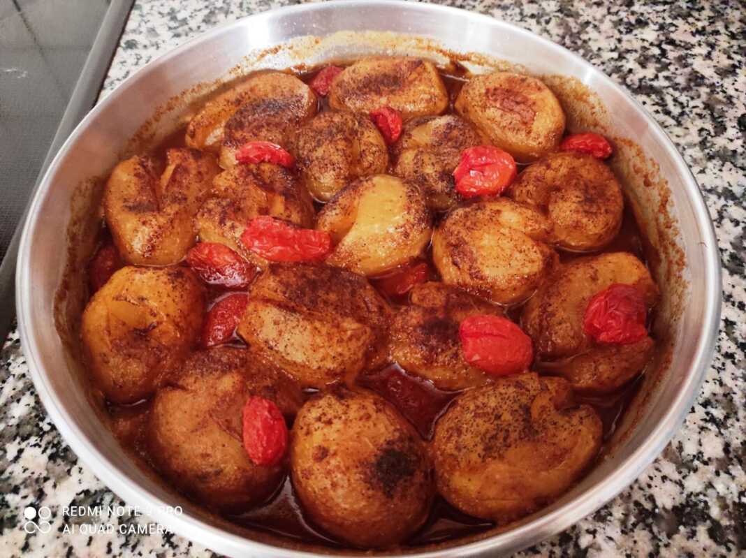 Νοστιμότατες ολόκληρες πατάτες ψημένες στο φούρνο μέσα σε άφθονο χυμό πορτοκάλι ωσότου μαλακώσουν, πιούν τα υγρά τους και μελώσουν. Το ψήσιμό τους στον φούρνο τις κάνει αφράτες, γεμάτες γεύση αλλά κι ελαφρά τραγανές απ’ έξω καθώς απορροφούν το χυμό πορτοκαλιού και ξεροψήνονται. Η εκτέλεση είναι τόσο απλή και το αποτέλεσμα τόσο θεσπέσια νόστιμο που μου θύμισε το αγαπημένο μου μότο στην κουζίνα «ουκ εν τω πολλώ το ευ, αλλ᾿ εν τω ευ το πολύ»!