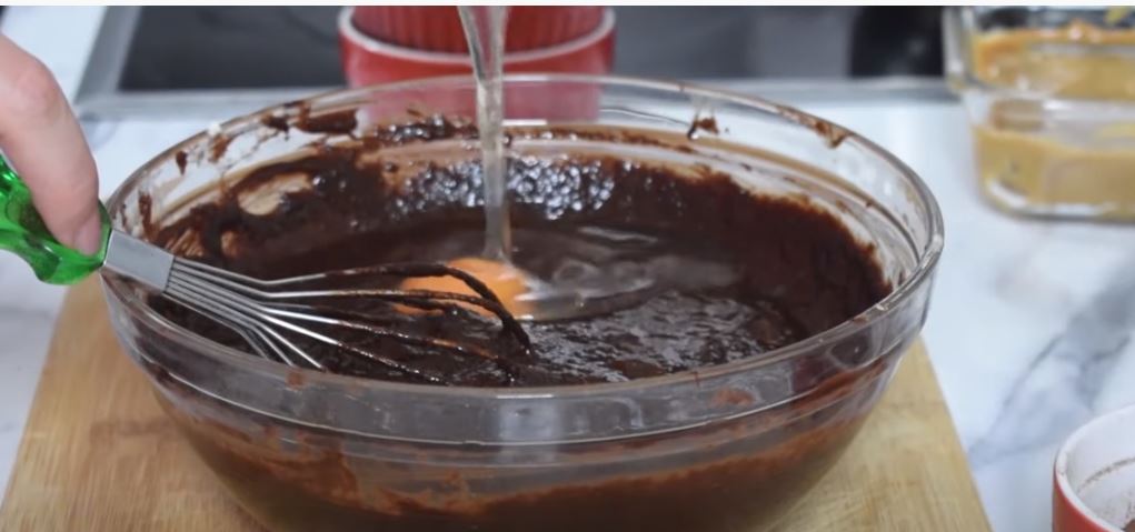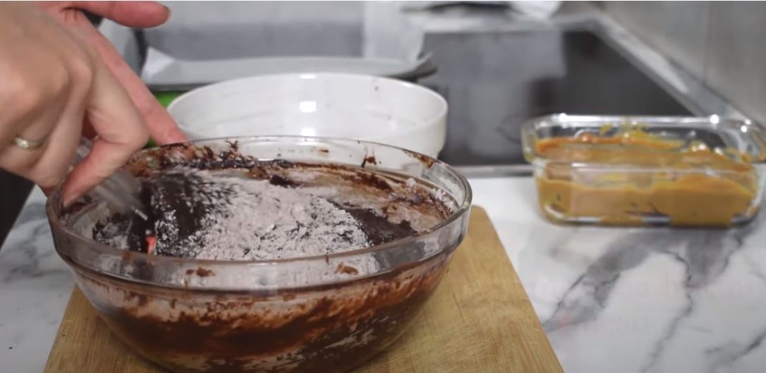 Προσθέστε σταδιακά το μείγμα αλευριού στο μείγμα σοκολάτας.