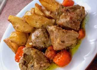 Χοιρινό κρασάτο με πατατούλες φούρνου