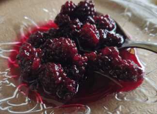 Αποβραδίς σκεπάζουμε τα βατόμουρα με ζάχαρη για να βγάλουν τους χυμούς τους .