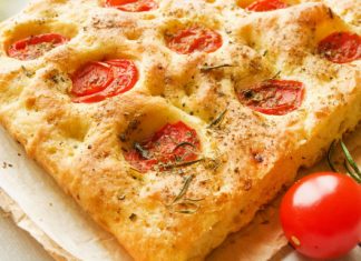 Συνταγή για φοκάτσια με τοματίνια, δενδρολίβανο και φιστίκια Αιγίνης