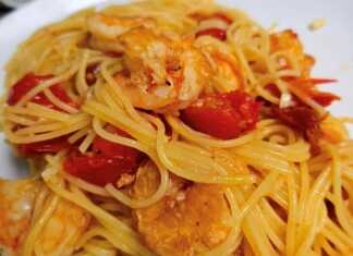 Γαριδομακαρονάδα με γαρίδες “τίγρης” και ντοματίνια