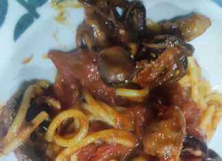 Σπαγγέτι με σάλτσα και χταποδάκια