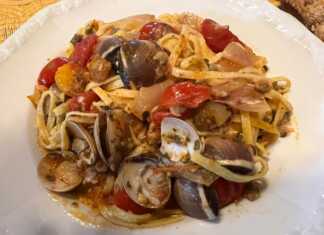 Ταλιατέλλες με αχιβάδες και κίτρινες και κόκκινες ντομάτες