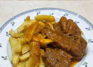Μοσχαράκι κοκκινιστό με πατάτες τηγανητές