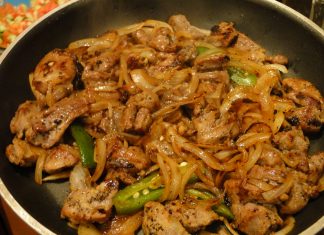 Πικάντικη Τηγανιά με καραμελωμένα κρεμμύδια