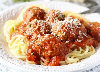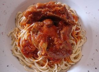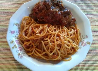 Αρνάκι κοκκινιστό κατσαρόλας με σπαγγέτι