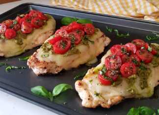 Αυτή η συνταγή Κοτόπουλο ψητό με πέστο με τυρί μοτσαρέλα, είναι ψημένα στήθοι κοτόπουλου που σερβίρονται με σάλτσα πέστο και φρέσκες...