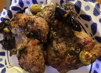 Η πρότασή μου για μεσημεριανό είναι ένα λαχταριστό κοτόπουλο φούρνου με ρύζι και λευκό κρασί