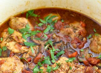 Κοτόπουλο κοκκινιστό με μανιτάρια