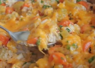 Κοτόπουλο με ρύζι και τυρί στο τηγάνι