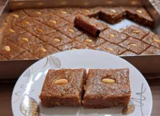 Υλικά Για το σιρόπι: 3,5 ποτήρια ζάχαρη 2,5 ποτήρια νερό 1 ξυλάκι κανέλας Για τον χαλβά: 2 ποτήρια νερό 2 ποτήρια καλαμποκέλαιο 2 ποτήρια αμύγδαλα αλεσμενα 1 φλιτζανάκι ούζο 1 κουταλιά της σούπας κανέλα 1...
