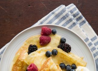 Γλυκά κρέπες με γιαούρτι, λικέρ μαστίχα και φρούτα