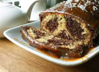 Δίχρωμο κέικ με σάλτσα καραμέλας