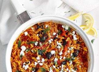 Κριθαράκι στο Φούρνο με φέτα και έλιες