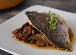 Λαβράκι με Μανιτάρια σε ξινόμαυρο κρασί