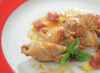 Καλαμάρι γεμιστό με ρύζι και κουκουνάρι