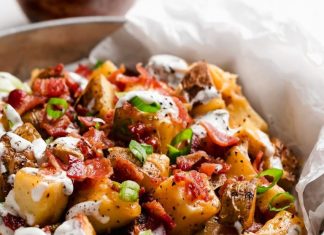 Τραγανές Πατάτες φούρνου με λιωμένο τυρί και μπέικον