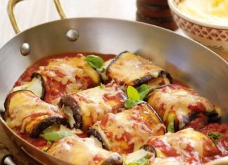 Απίθανα Ρολά μελιτζάνας με παρμεζάνα, μοτσαρέλα και ανθότυρο στο φούρνο