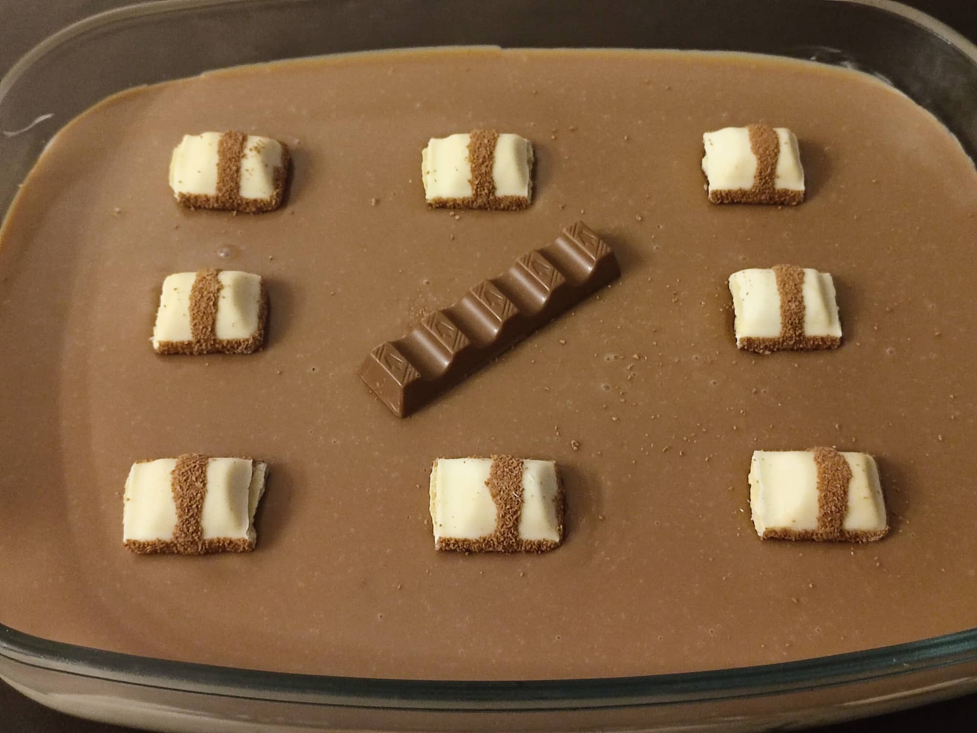 3. Διακόσμηση: Διακοσμούμε με τα κομματάκια από το Kinder Bueno (ή με τριμμένη σοκολάτα Kinder).