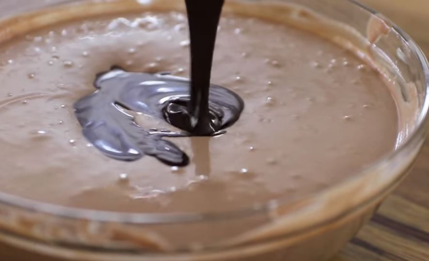Ρίξτε τη λιωμένη σοκολάτα, ανακατέψτε μέχρι να ομογενοποιηθούν.