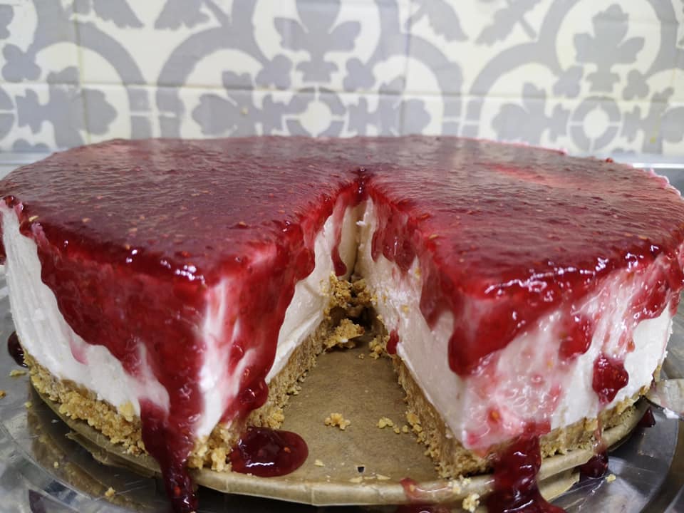 Αχ, τι υπέροχο cheesecake με μαρμελάδα φράουλα!