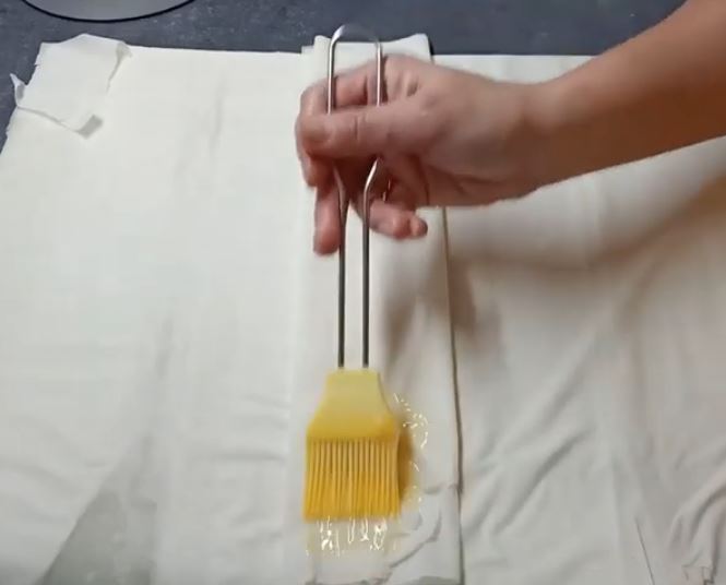 . Διπλώστε τις άκρες του φύλλου και βουρτσίζετε γενναιόδωρα με το υπόλοιπο βούτυρο.