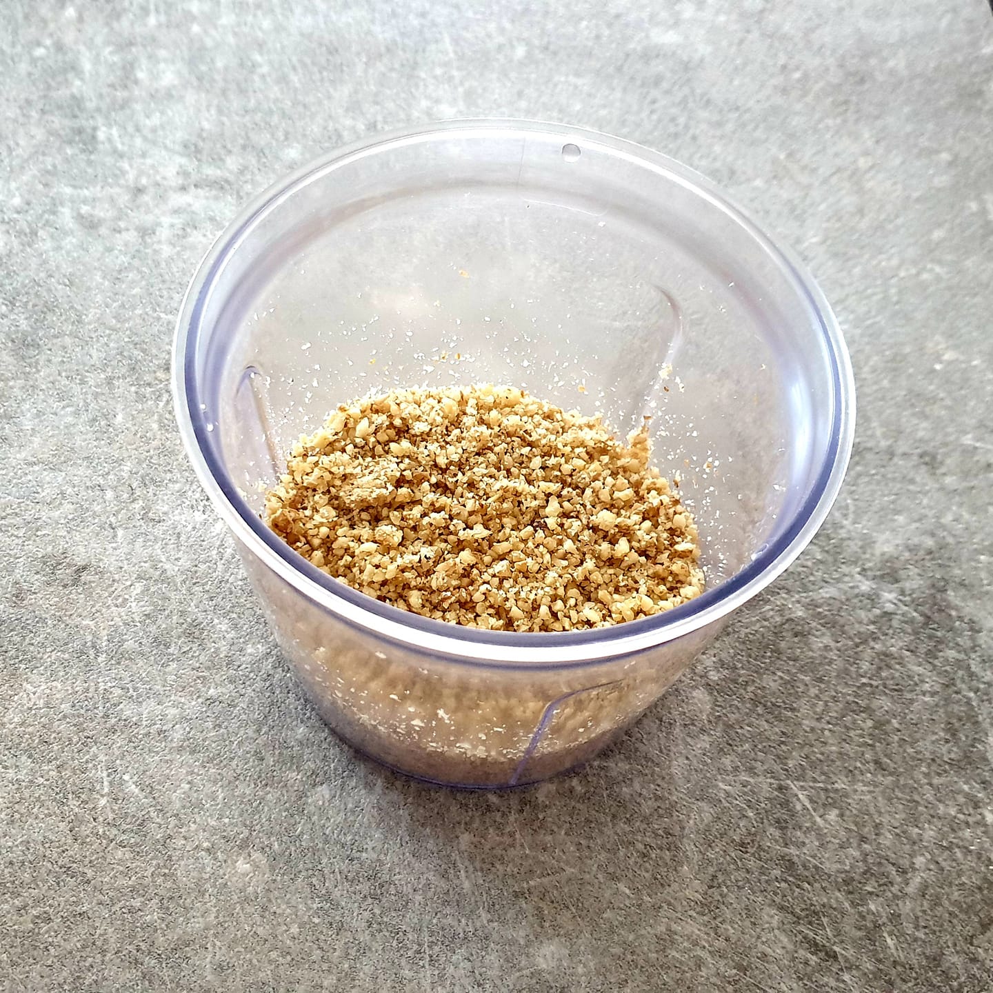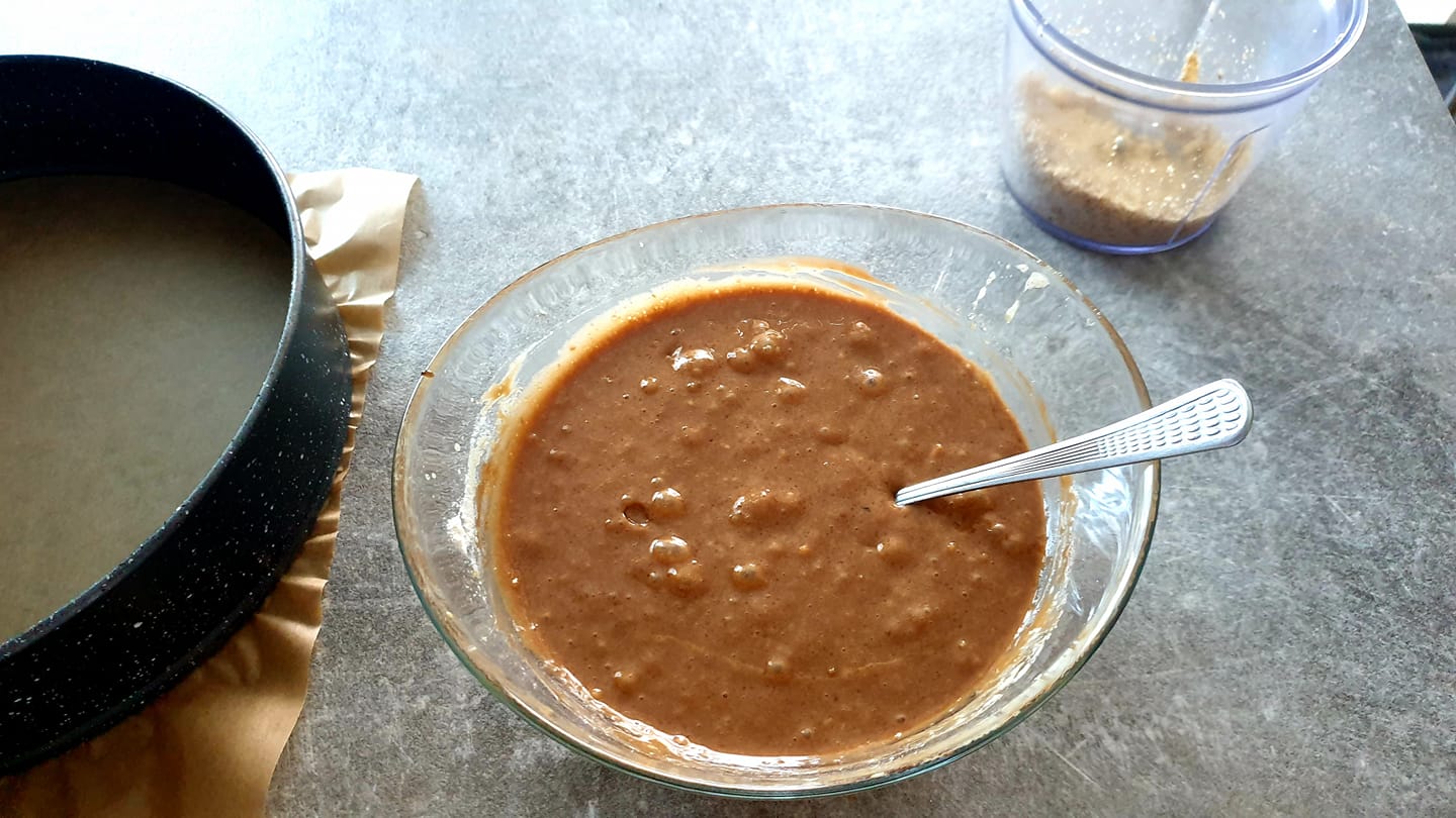 Όλα τα προϊόντα αναμιγνύονται, με μόνο το μισό από τα καρύδια να προστίθενται στο μείγμα.