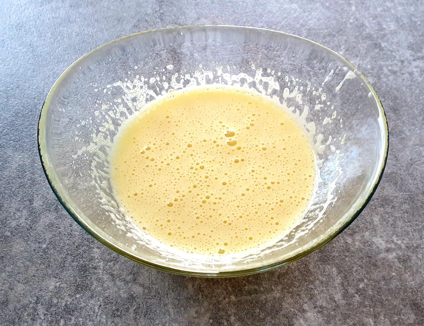 * Σπάμε τα αυγά σε ξεχωριστό μπολ, προσθέτουμε τη ζάχαρη και χτυπάμε με το μίξερ μέχρι να αυξηθούν σε όγκο.