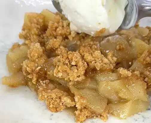 Ψήστε στο προθερμασμένο φούρνο για 45-50 λεπτά ή μέχρι το crumble να ροδίσει και τα μήλα να είναι μαλακά.