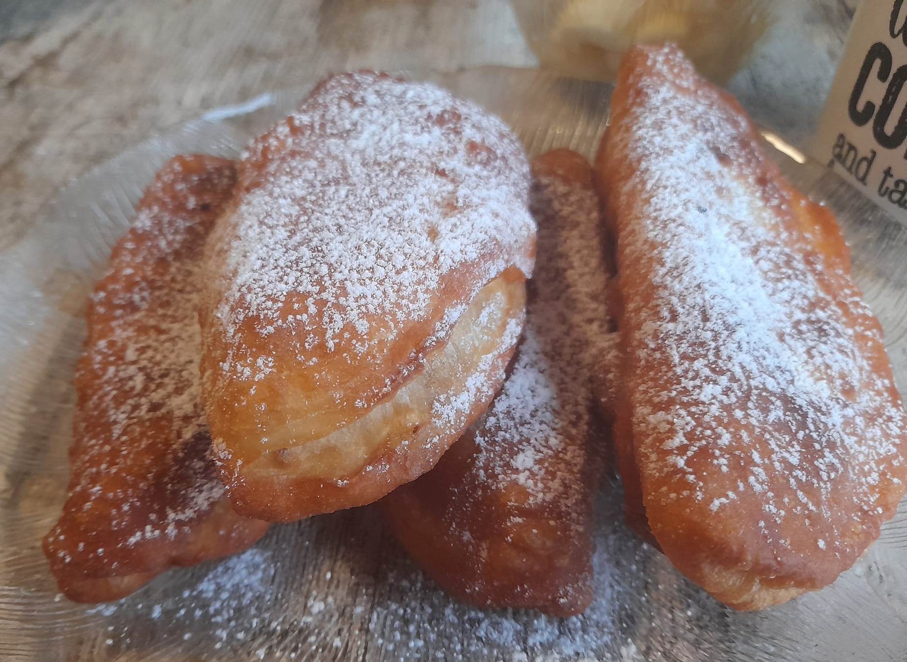 Τηγανίζονται και αφήνονται σε χαρτί κουζίνας. Πασπαλίζω με αχνη ζαχαρη